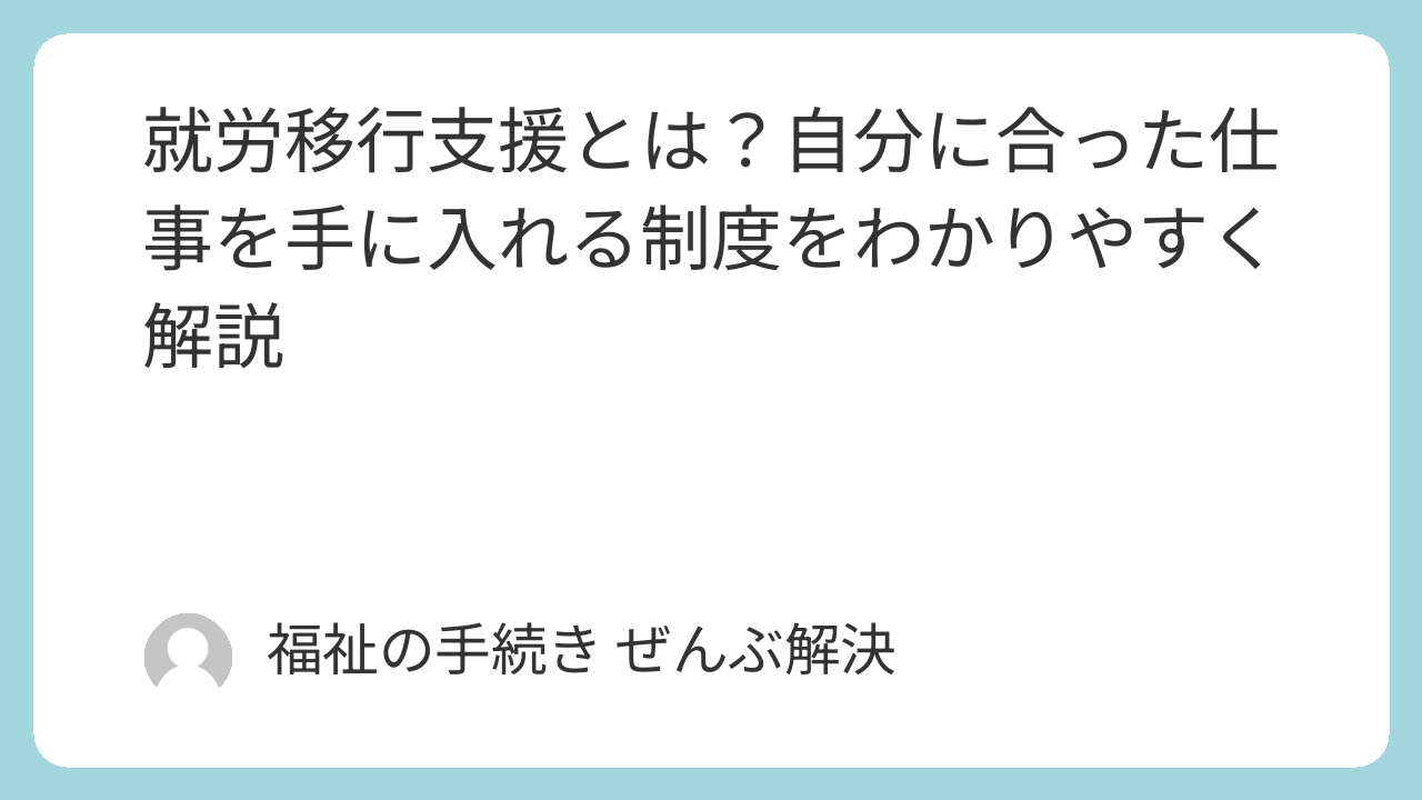 就労移行支援とは、障害者総合支援法に基づいた公的な「就労支援サービス」の一つです。