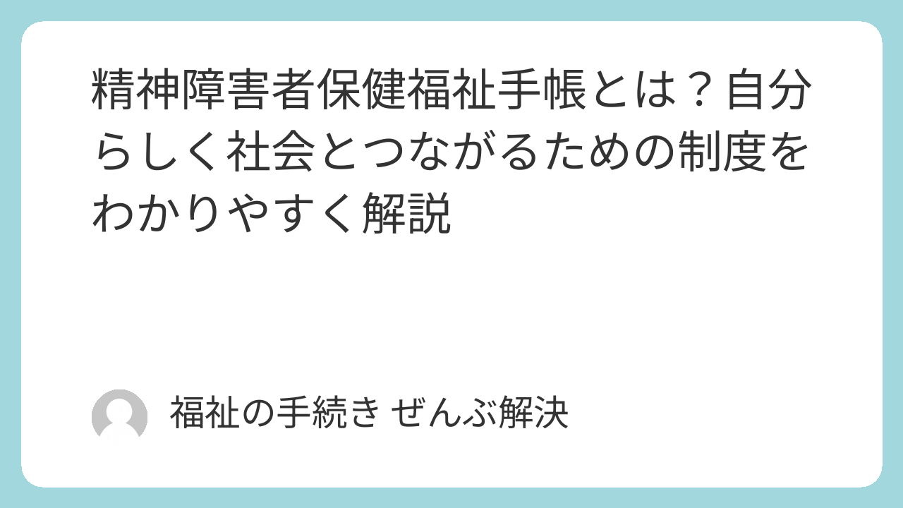 そんな風に、目に見えない「生きづらさ」を抱えて一人で悩んでいませんか?精神障害者保健福祉手帳は、精神疾患(心の病気)によって日常生活や社会生活に制約がある方が、さまざまな支援を受けやすくするための制度です。