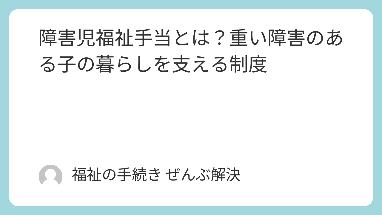 障害児福祉手当は、重度の障害があるために日常生活のあらゆる場面で家族などの助けが必要なお子さんの、経済的負担を軽くするために設けられた制度です。